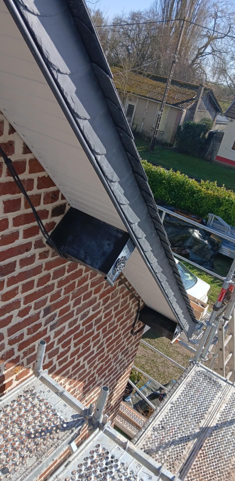 Ce chantier, situé à Ham, concerne la réalisation d’une rive avec bardeli en ardoises sur une habitation, exécuté par Carré Couverture. Les travaux ont été menés avec une maîtrise technique confirmée, garantissant une protection optimale du chevron de rive et une finition esthétique.